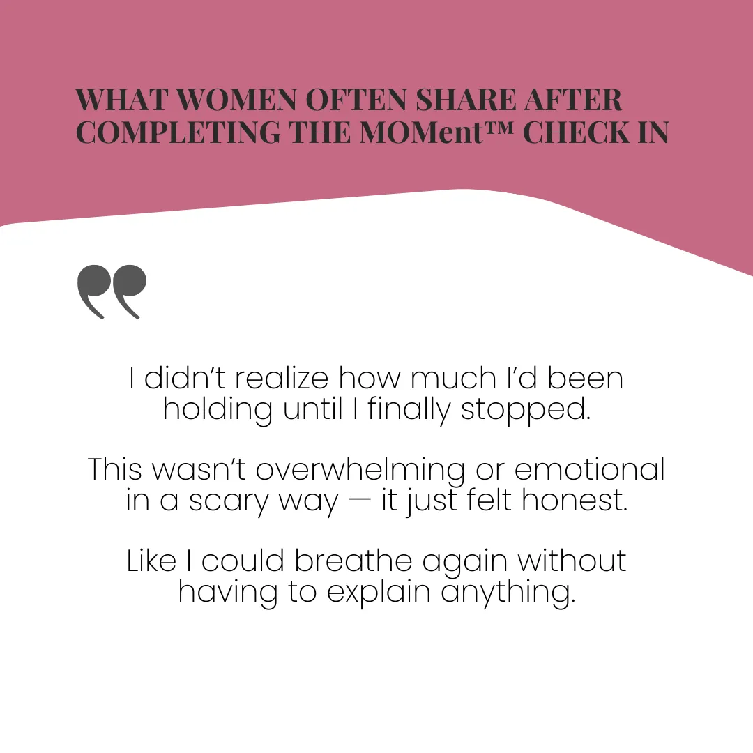 For one dollar, you receive immediate access to The MOMent™ CHECK IN, a guided written reflection created to help you slow down and hear yourself again.